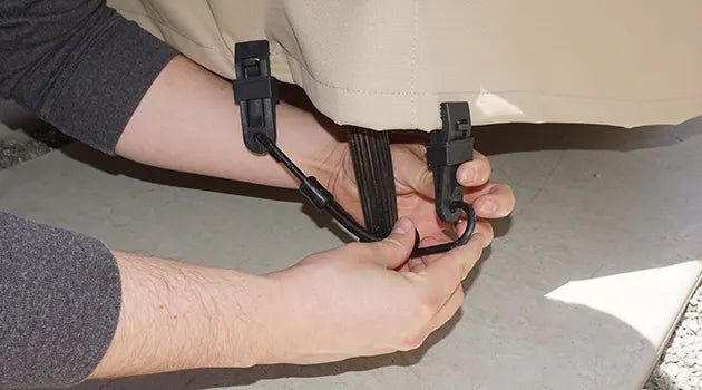 - To secure your cover to outdoor furniture, we highly recommend utilizing Cover Clamps to prevent your cover from shifting or blowing off your furniture.